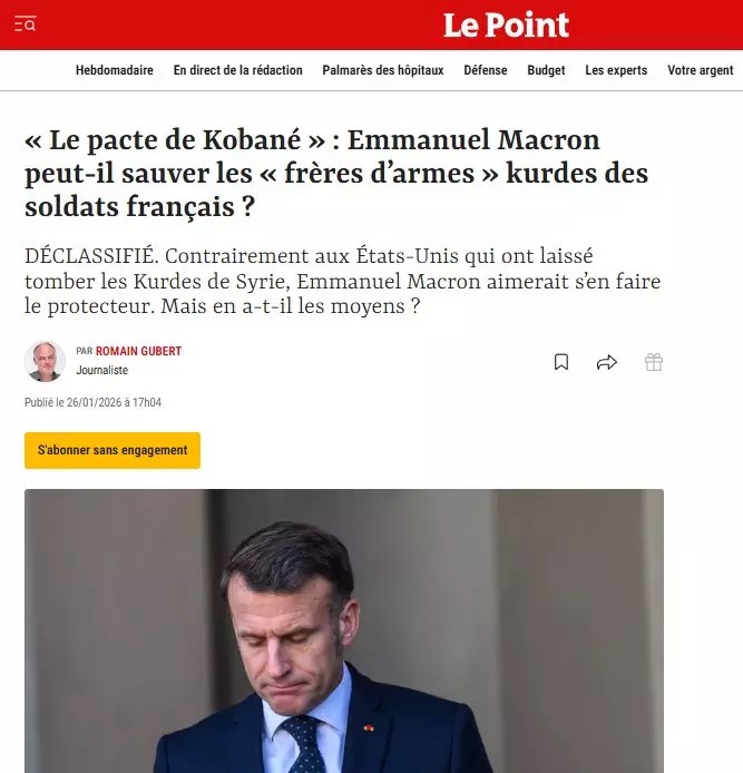 Fransız gazeteci Romain Gubert Le Point'te, Macron'un Mazlum Abdi ve Ahmed Şara arasında arabuluculuk yapma girişiminde bulunduğunu ancak Suriye tarafından karşılık bulamadığı için öfkelendiğini yazdı.
